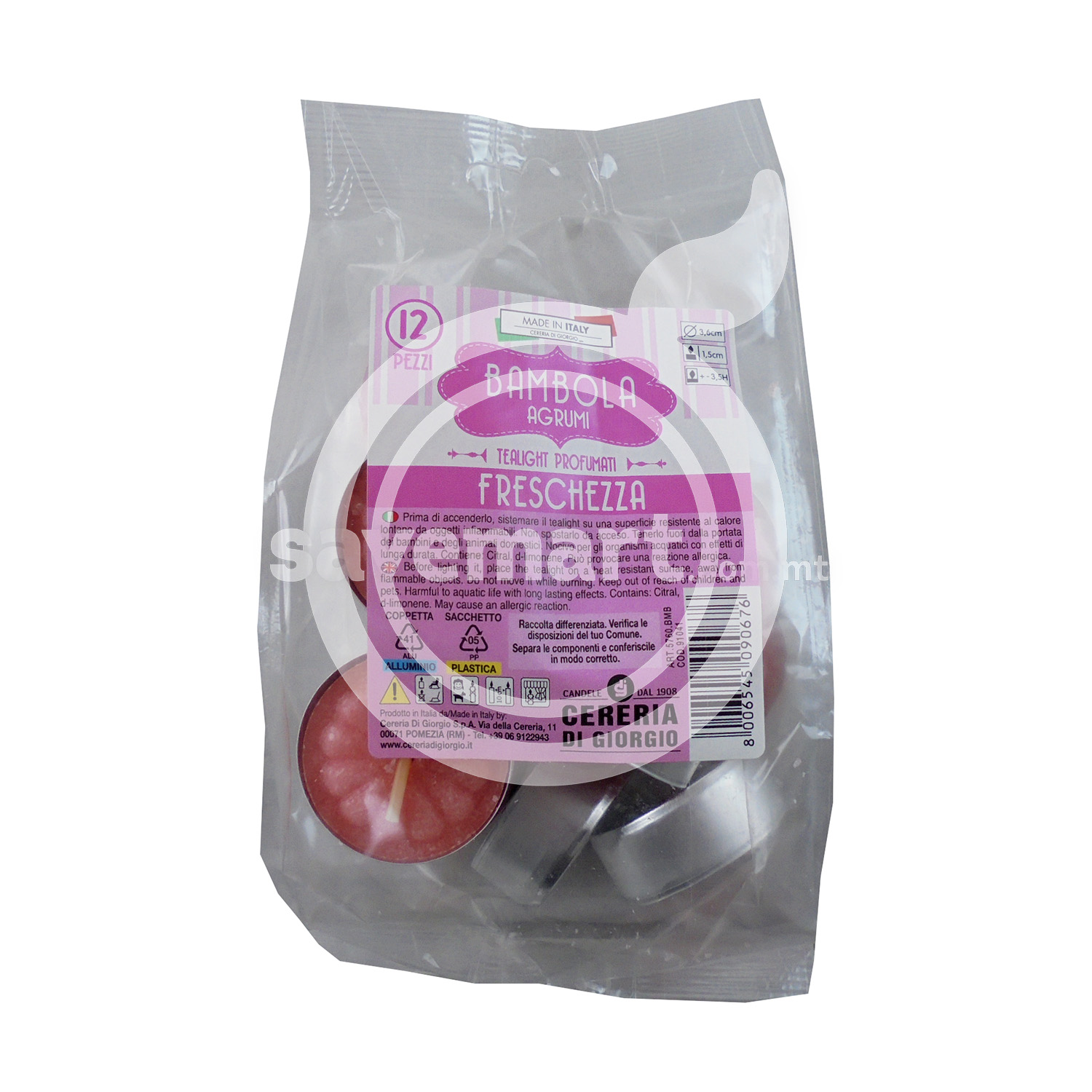 PINK CITRUS TEALIGHTS BAG 12PCS